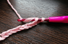 Do not remove the crochet hook from the loop as you do this. Now you need to bring the yarn up to the correct height to work the first stitch. So, to raise the yarn, chain 1 (this is called a turning chain).