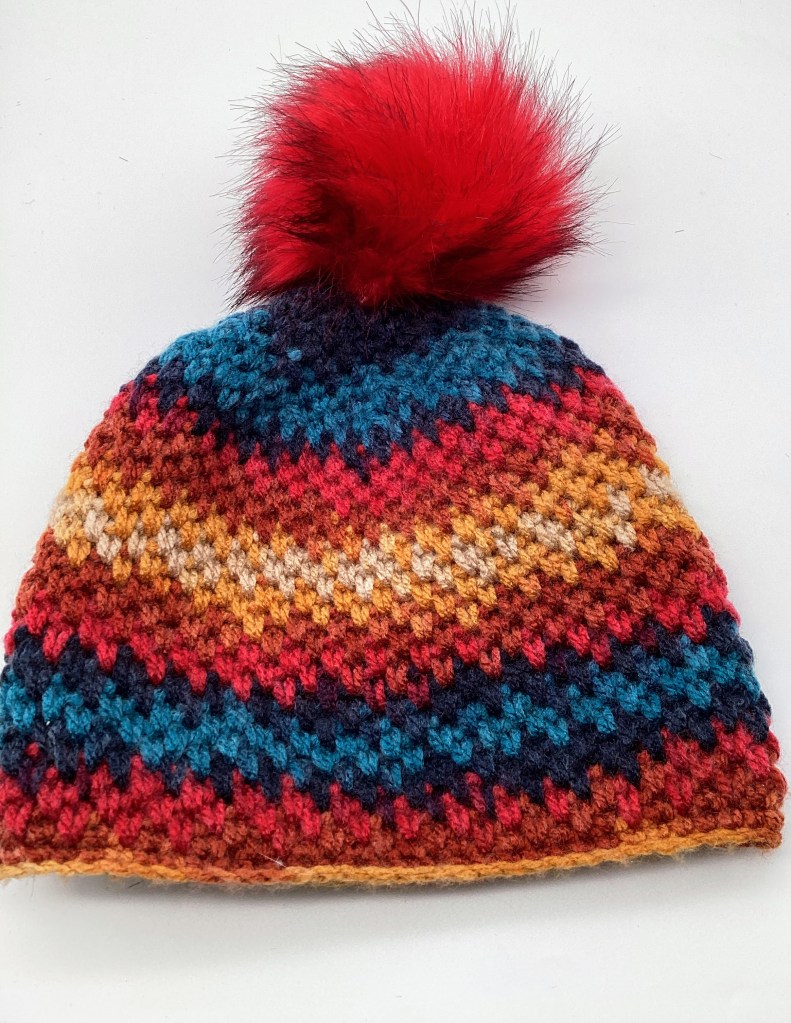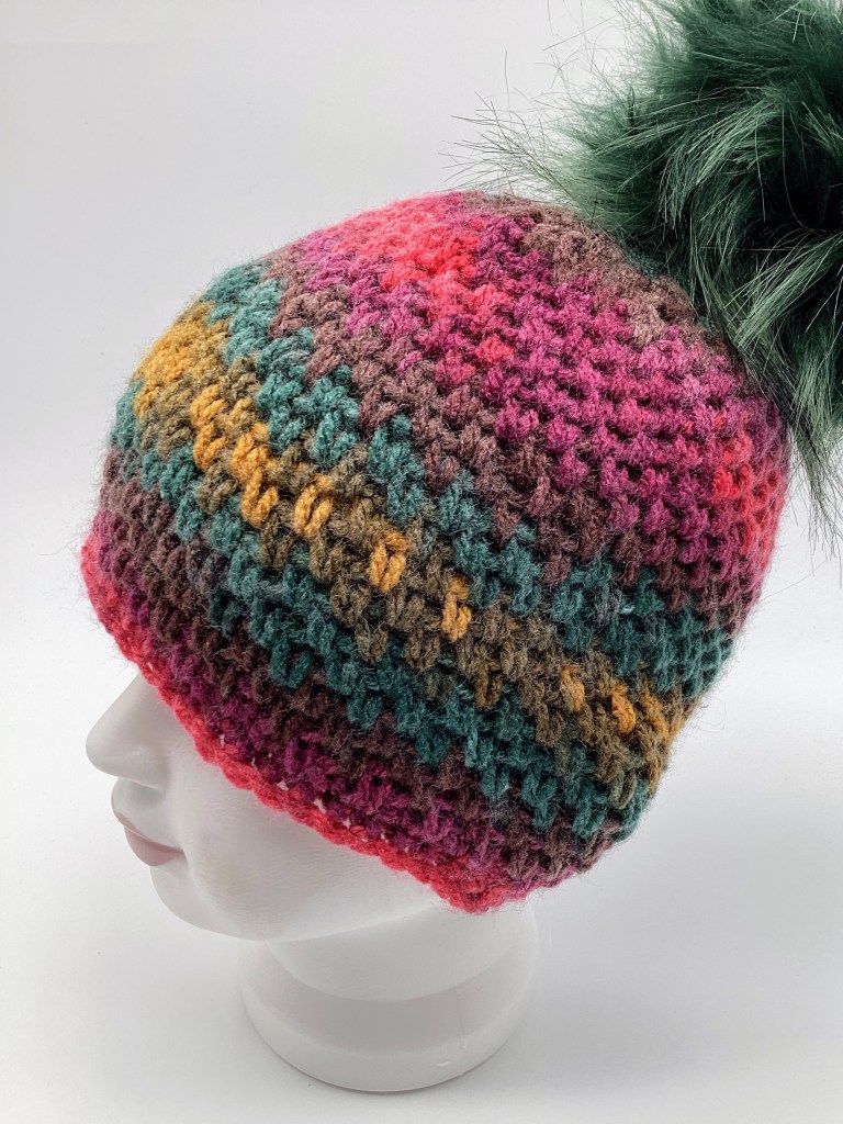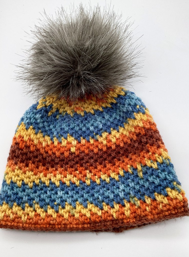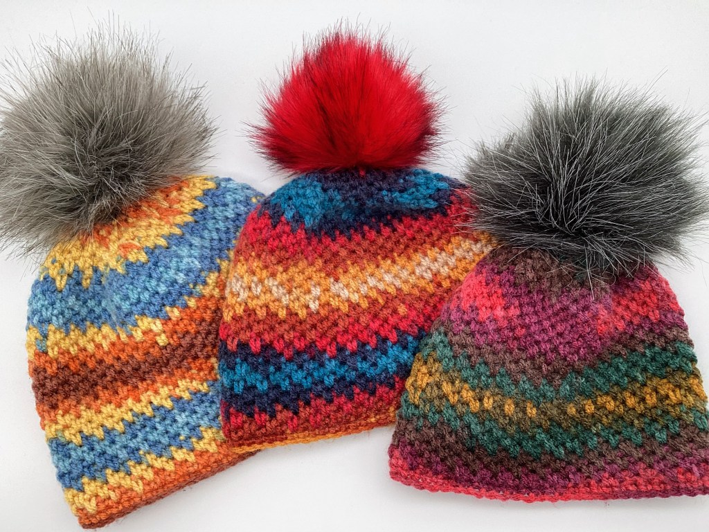 Don’t you love the trend of faux fur pom poms? They make a perfect finish to a stylish winter hat crochet pattern.