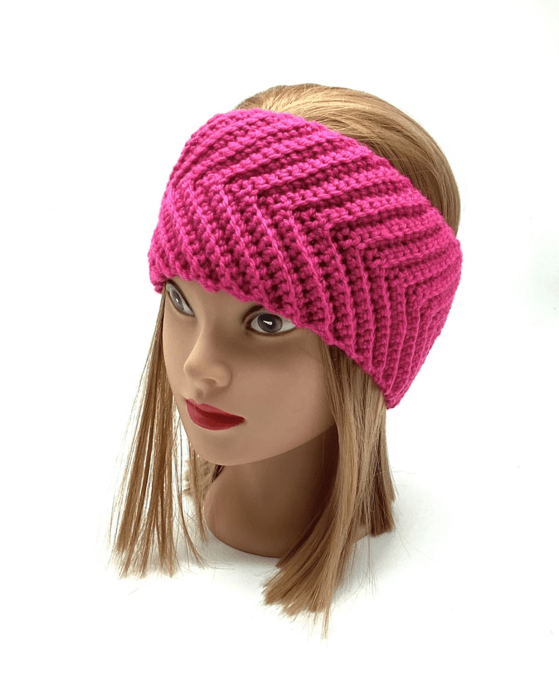 The chevron crochet design is made up of zigzag shapes, which are perfect for an crochet earwarmer because it adds texture while remaining stretchy. The beauty of this crochet pattern lies in the symmetry—it’s a repeating V-shape that looks great in any yarn and works up quickly. Using only single crochet stitches, this crochet pattern is easy enough for beginners, but still provides a polished and professional finish.